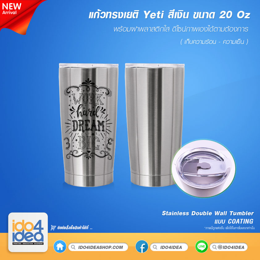 [0416SDYB1] แก้วทรงเยติ Yeti สีเงิน เก็บร้อน-เย็น พิมพ์ภาพ พิมพ์ชื่อได้ ขนาด 20 Oz.