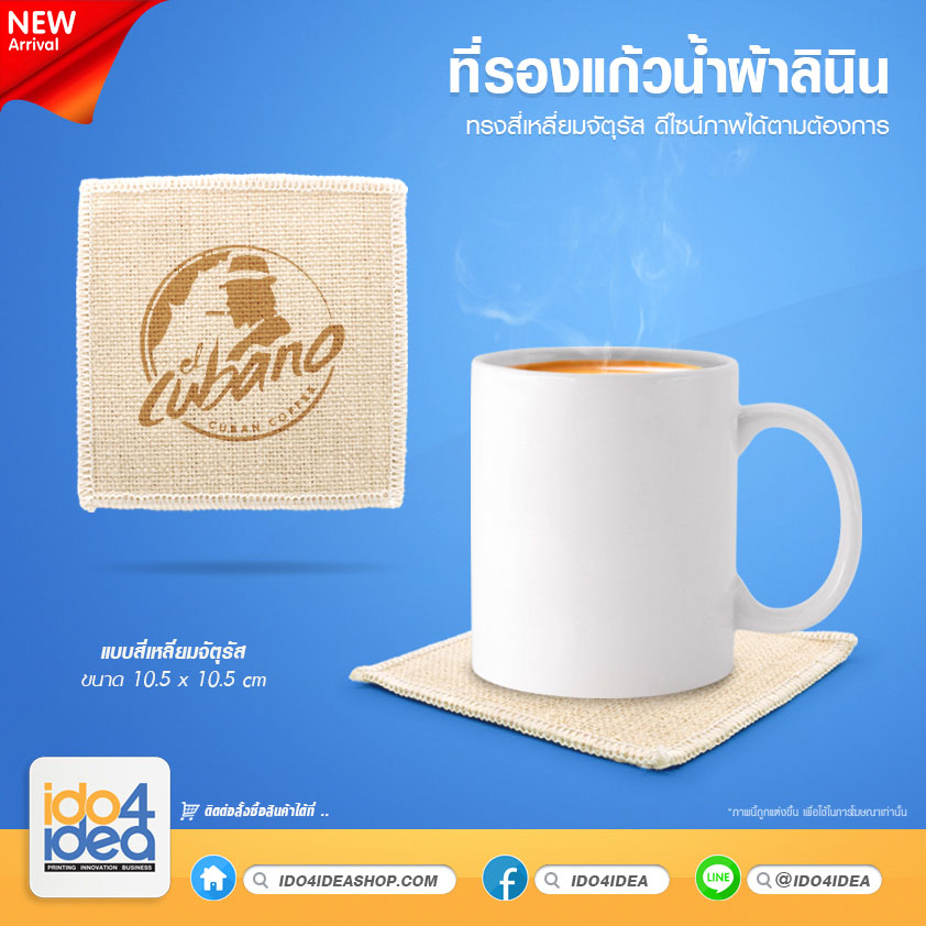 [2604WLC01] ที่รองแก้วน้ำผ้าลินิน - ทรงเหลี่ยมจัตุรัส ขนาด 10.5 x 10.5 ซม. พิมพ์ภาพ สกรีนรูป