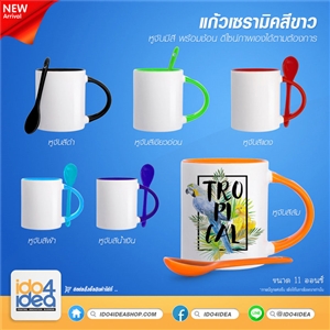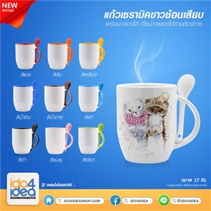 [0412SPM0] แก้วเซรามิคขาว พร้อมช้อนเสียบ ขนาด 12 Oz. สำหรับพิมพ์สกรีนทรานเฟอร์, แก้วSublimation, แก้วสำหรับสกรีน