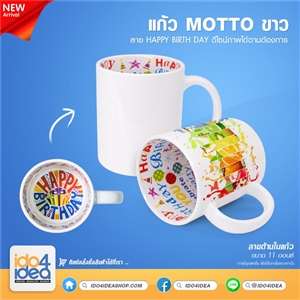 [0401MHBD1] แก้ว Motto ขาว 11 Oz. ทรงกระบอก ลาย Happy Birthday ด้านใน