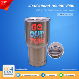 [2021YTC20S] แก้วสเตนเลส ทรงเยติ YETI รุ่น Car Bottle เก็บร้อน-เย็น ขนาด 20 Oz. สีเงิน พิมพ์ภาพ พิมพ์ชื่อได้
