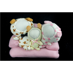 [love-26d] คู่รักหมีครีมชุดชมพูจุดขาว