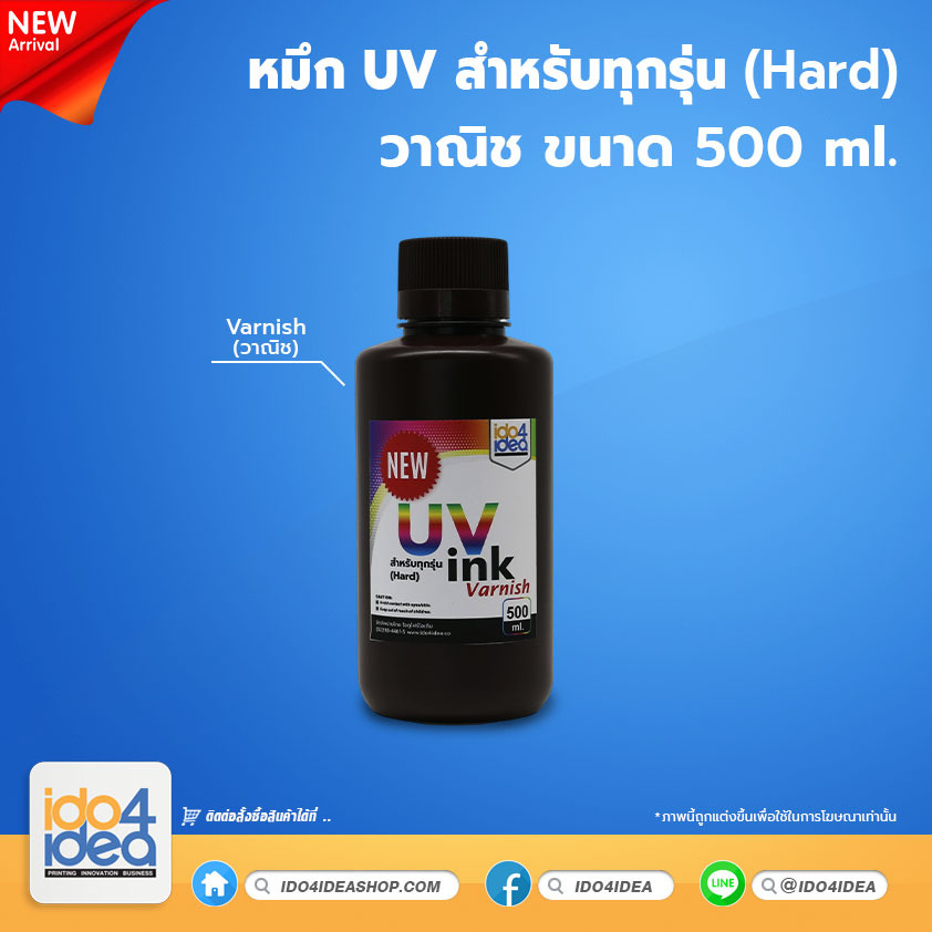 [PKUV-ALL-H-CLN-500ml] หมึก UV สำหรับทุกรุ่น (Hard) วานิช 500 ml. (NEW)