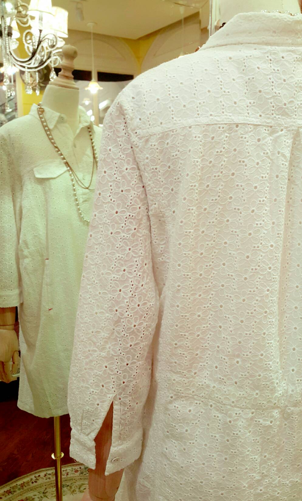 เสื้อลูกไม้ตัวยาว คอปกเชิ๊ต งานใส่สวยดูดี - free size