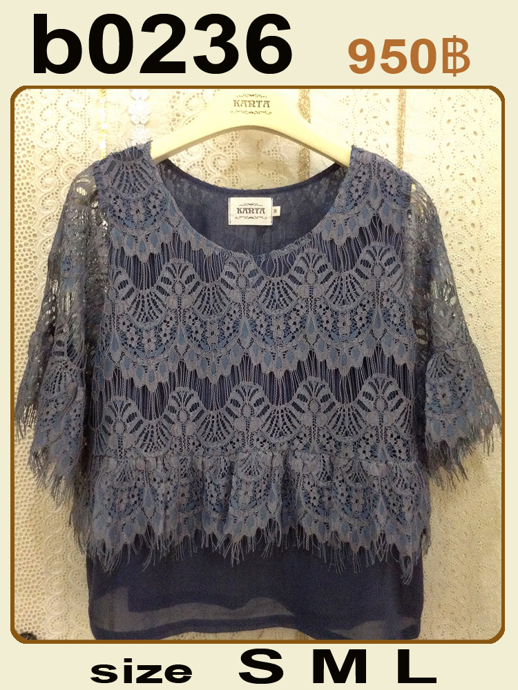 [ฺB0260] เสื้อลูกไม้แขนผ้าชีฟอง