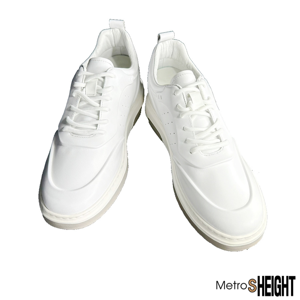 [700213] รองเท้าผ้าใบเสริมส้น เพิ่มความสูง 7 ซม. White Leather "Hensen" Trainers