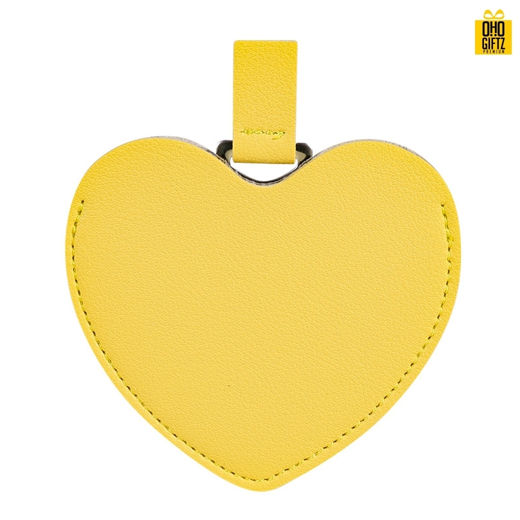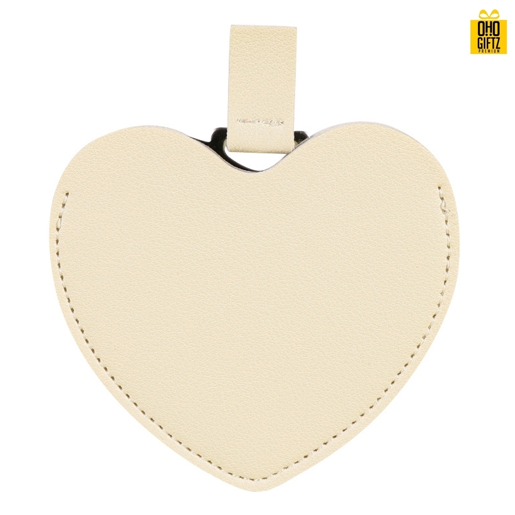 กระจกสแตนเลสรูปหัวใจซองหนัง สกรีนชื่อ สกรีนโลโก้ ทำเป็นของพรีเมี่ยมได้