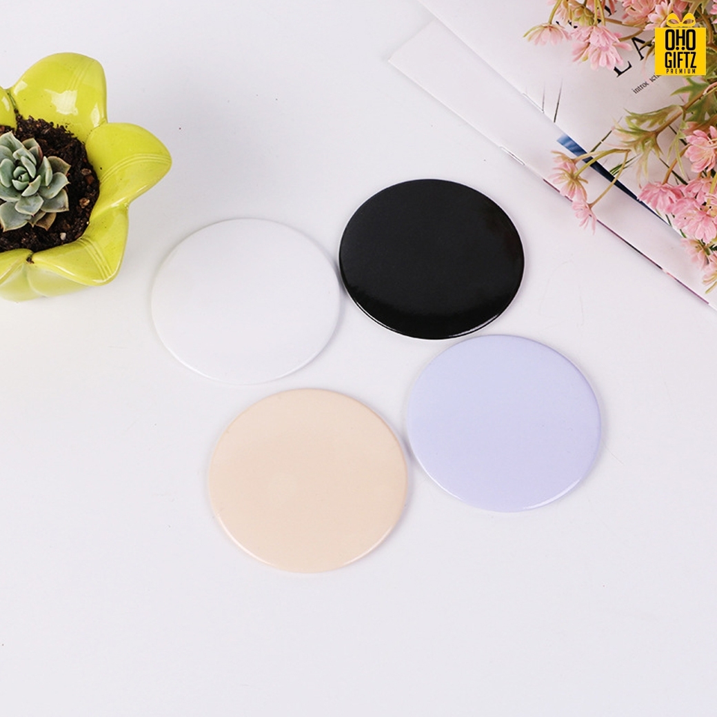 กระจกส่องหน้าทรงกลม สกรีนชื่อ สกรีนโลโก้ ทำเป็นของพรีเมี่ยมได้ (ขั้นต่ำ 500 ชิ้น)