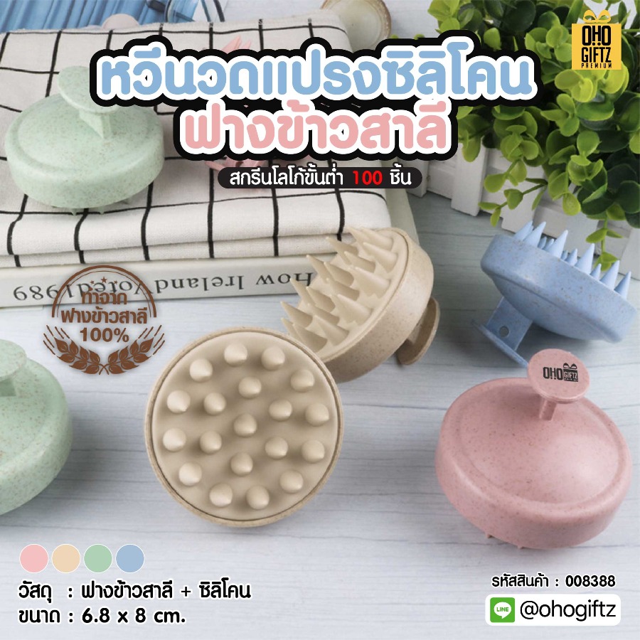หวีนวดแปรงซิลิโคนฟางข้าวสาลี สกรีนโลโก้ ทำเป็นของพรีเมี่ยมได้