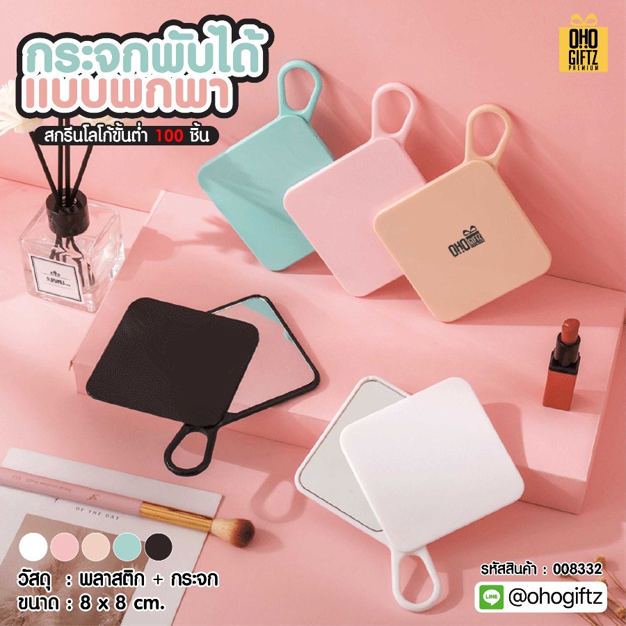 กระจกพับได้แบบพกพา สกรีนโลโก้ ทำเป็นของพรีเมี่ยมได้