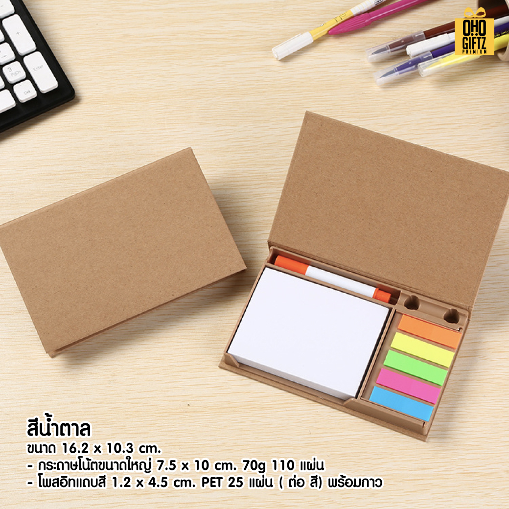 กระดาษโน๊ตพร้อมโน๊ตแพดและปากกา สกรีนโลโก้ ทำเป็นของพรีเมี่ยม ของชำร่วย (ขั้นต่ำ 100 ชิ้น)