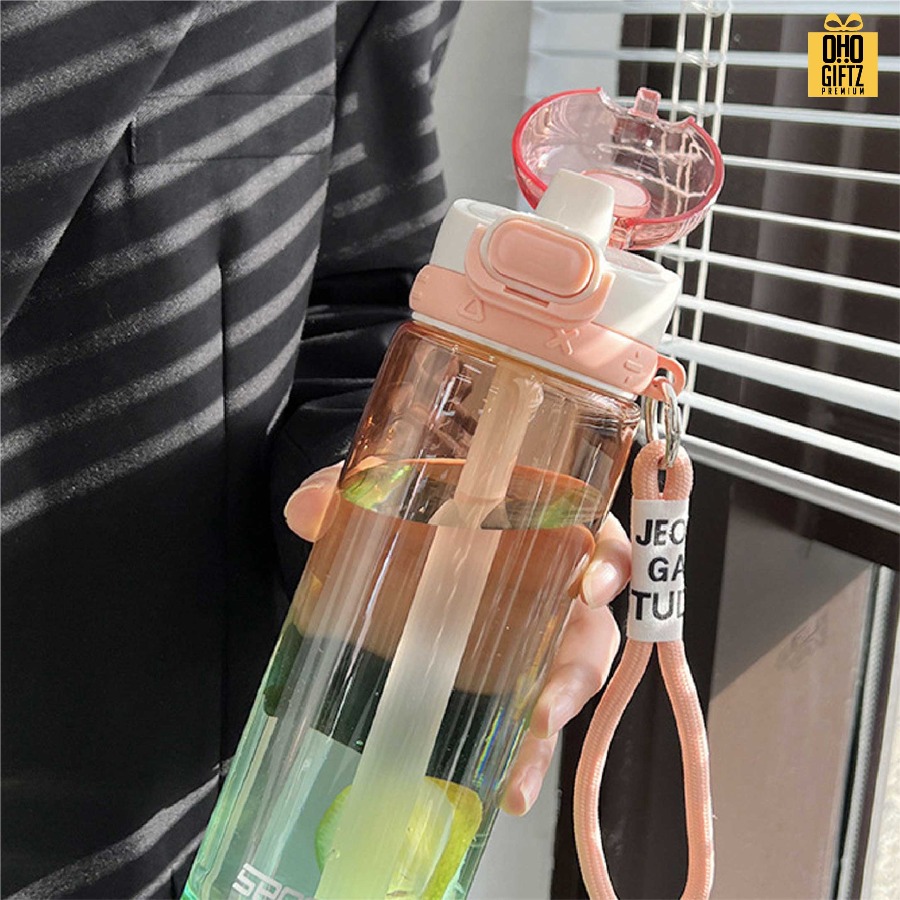 กระบอกน้ำพลาสติกไล่สี พร้อมหูหิ้ว ดีไซน์เก๋ไก๋ น้ำหนักเบา สามารถใส่เครื่องดื่มได้ตามต้องการ น้ำหนักเบา พกพาสะดวก
