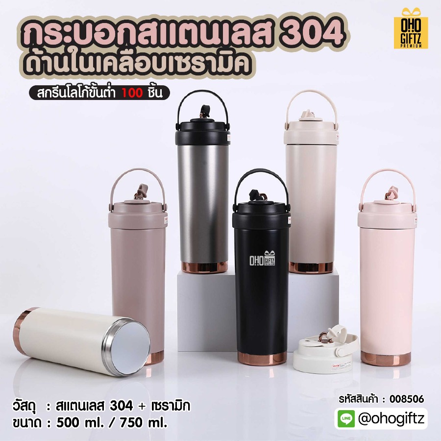 กระบอกสแตนเลส 304 ด้านในเคลือบเซรามิค สกรีนโลโก้ ทำเป็นของพรีเมี่ยมได้