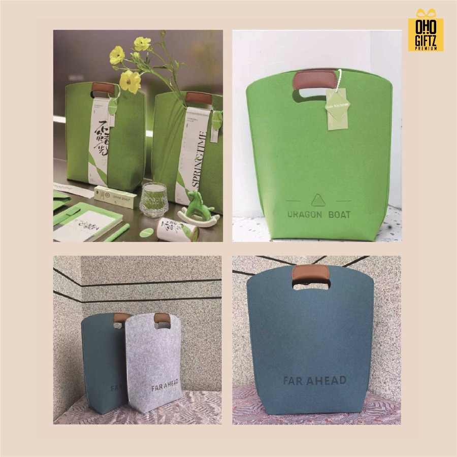 กระเป๋าถือผ้าสักหลาดหูจับหนัง PU สกรีนโลโก้ ทำเป็นของพรีเมี่ยมได้