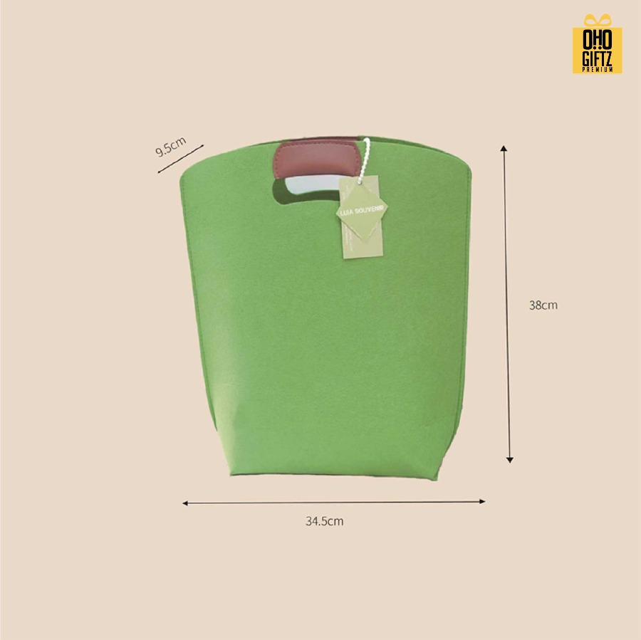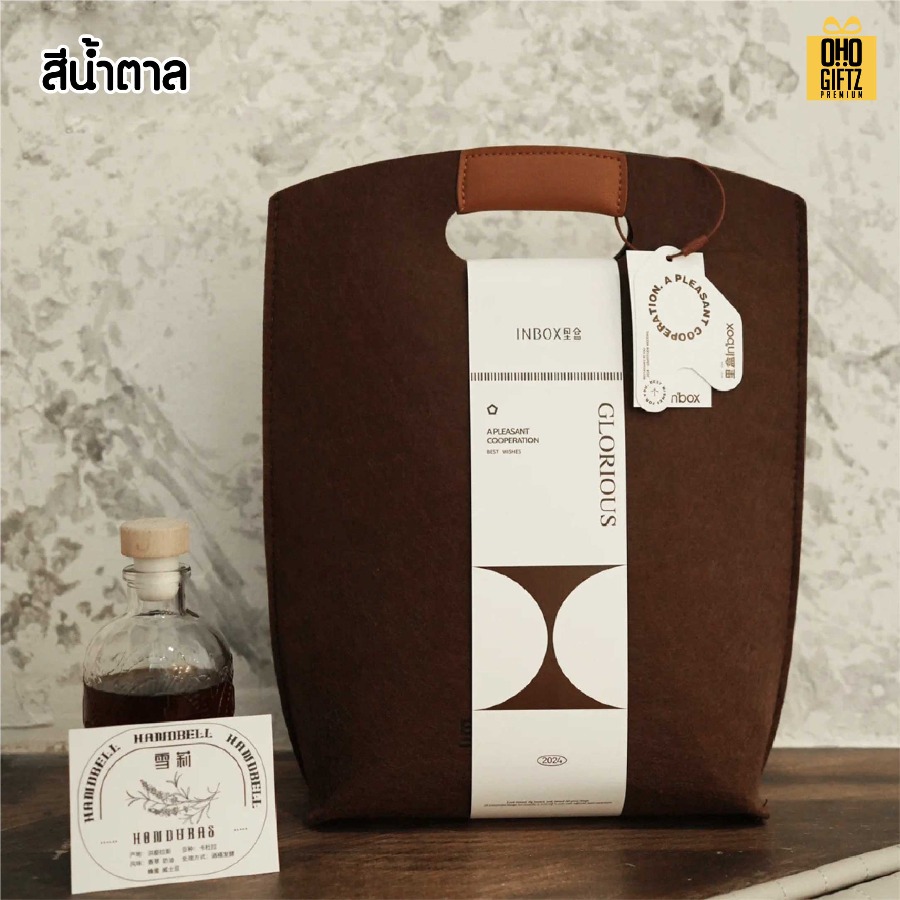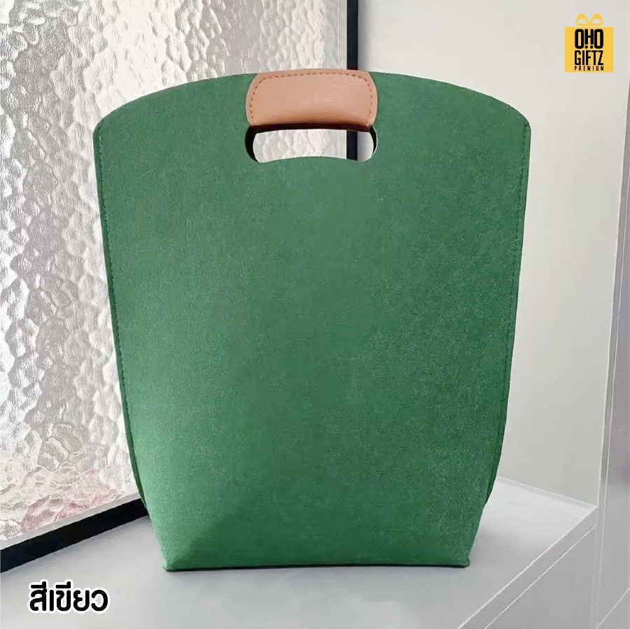 กระเป๋าถือผ้าสักหลาดหูจับหนัง PU  สกรีนชื่อ สกรีนโลโก้ ทำเป็นของพรีเมี่ยมได้ (ขั้นต่ำ 100 ชิ้น)