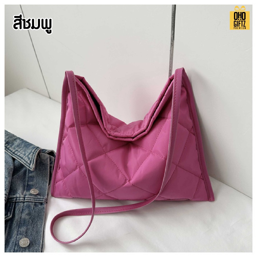 กระเป๋าผ้าทรงสี่เหลี่ยมตาราง ดีไซน์เก๋ไก๋ สะดวกในการสะพาย ผลิตจากวัสดุคุณภาพดี สีสันสวยงาม กระเป๋าน้ำหนักเบา ขนาดพอเหมาะ ใช้ใส่ของใช้ต่างๆ ได้