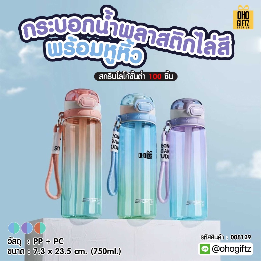 กระบอกน้ำพลาสติกไล่สี พร้อมหูหิ้ว สกรีนโลโก้ ทำเป็นของพรีเมี่ยมได้
