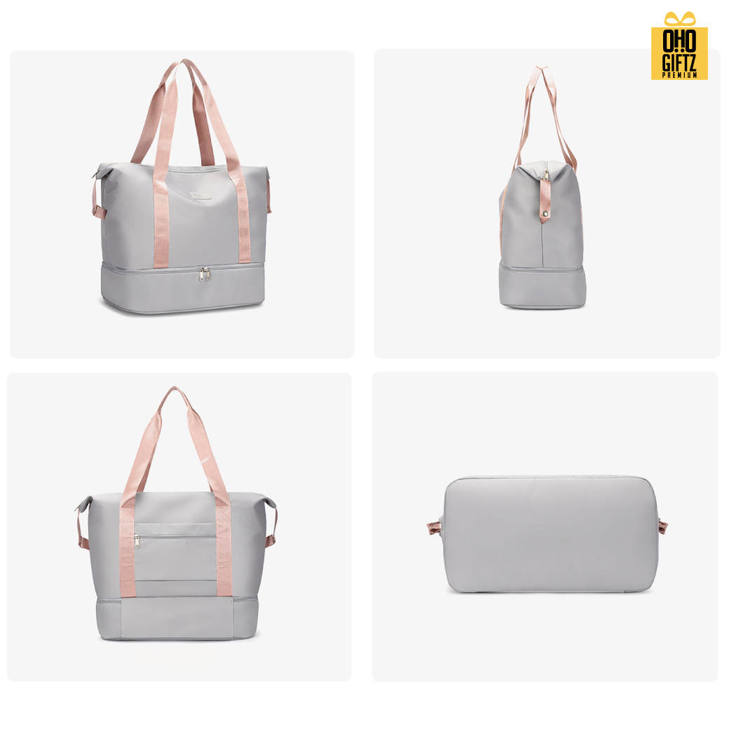 กระเป๋าฟิตเนสมีแยกชั้นใส่รองเท้ากีฬา ดีไซน์มินิมอล สีสันสวยงาม สามารถสะพายหรือคล้องแขนได้ ด้านล่างกระเป๋ามีช่องสามารถใส่รองเท้าได้ ปากกระเป๋ากว้างสามารถบรรจุสิ่งของได้หลากหลาย ขนาดพอเหมาะ ใช้งานได้หลายหลายสถานการณ์