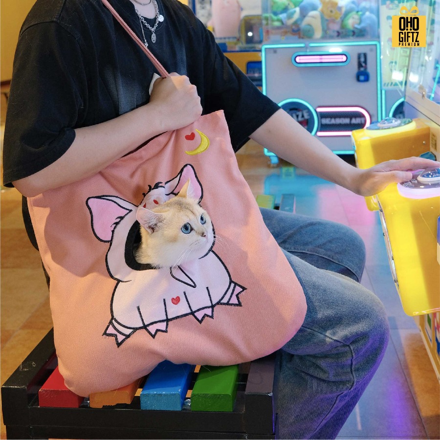 กระเป๋าสะพายใส่สัตว์เลี้ยง สกรีนชื่อ สกรีนโลโก้ ทำเป็นของพรีเมี่ยมได้ (ขั้นต่ำ 100 ชิ้น)