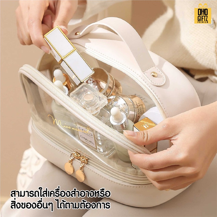 กระเป๋าเครื่องสำอาง 2 ชั้น มีหน้าต่างใส ดีไซน์มินิมอล สามารถบรรจุเครื่องสำอาง ผลิตจากวัสดุคุณภาพดี ใส่สิ่งของได้สะดวกปากกระเป๋ากว้าง เหมาะกับยามเดินทาง หรือพกพาออกนอกสถานที่