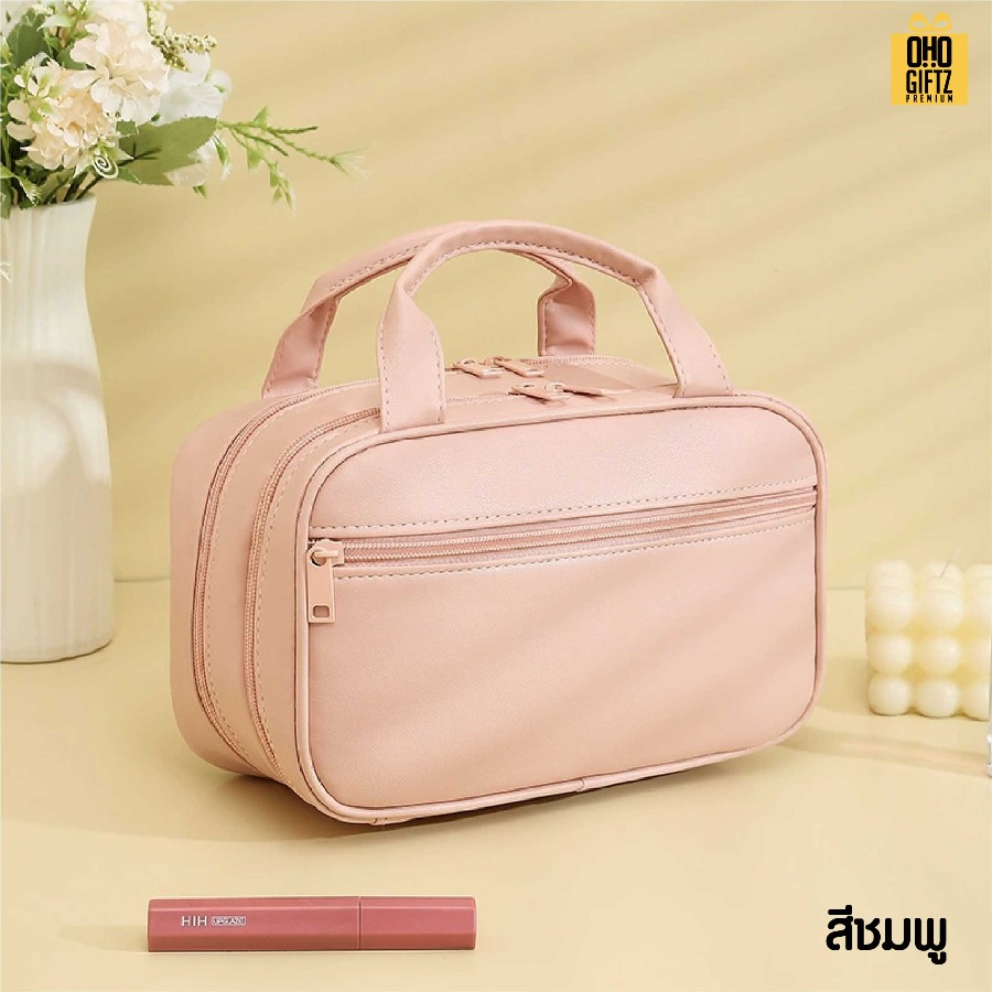กระเป๋าเครื่องสำอาง PU ขนาดใหญ่ สกรีนโลโก้ ทำเป็นของพรีเมี่ยมได้