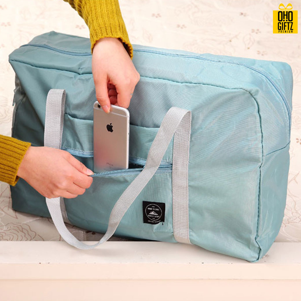 กระเป๋าเดินทางแบบพับได้ สกรีนโลโก้ฟรี1สี1จุด ทำเป็นของพรีเมี่ยม ของชำร่วย ของที่ระลึก