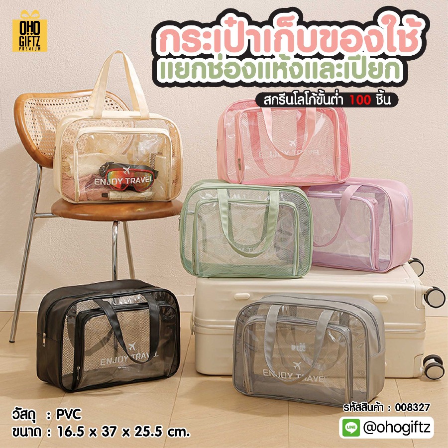 กระเป๋าเก็บของใช้ แยกช่องแห้งและเปียก สกรีนชื่อ สกรีนโลโก้ ทำเป็นของพรีเมี่ยมได้