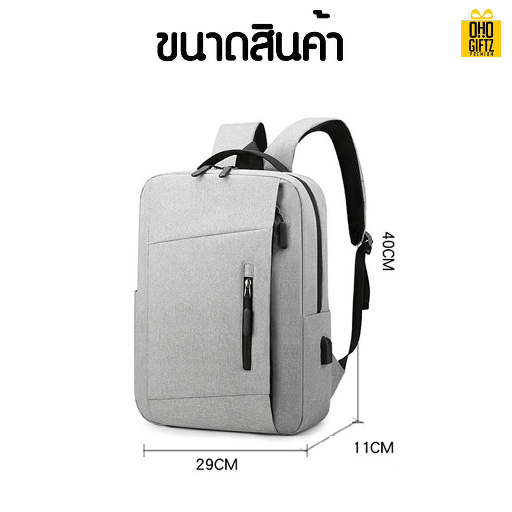 กระเป๋าเป้สะพายหลังมีช่องต่อ USB สกรีนชื่อ สกรีนโลโก้ ทำเป็นของพรีเมี่ยมได้ (ขั้นต่ำ 100 ชิ้น)