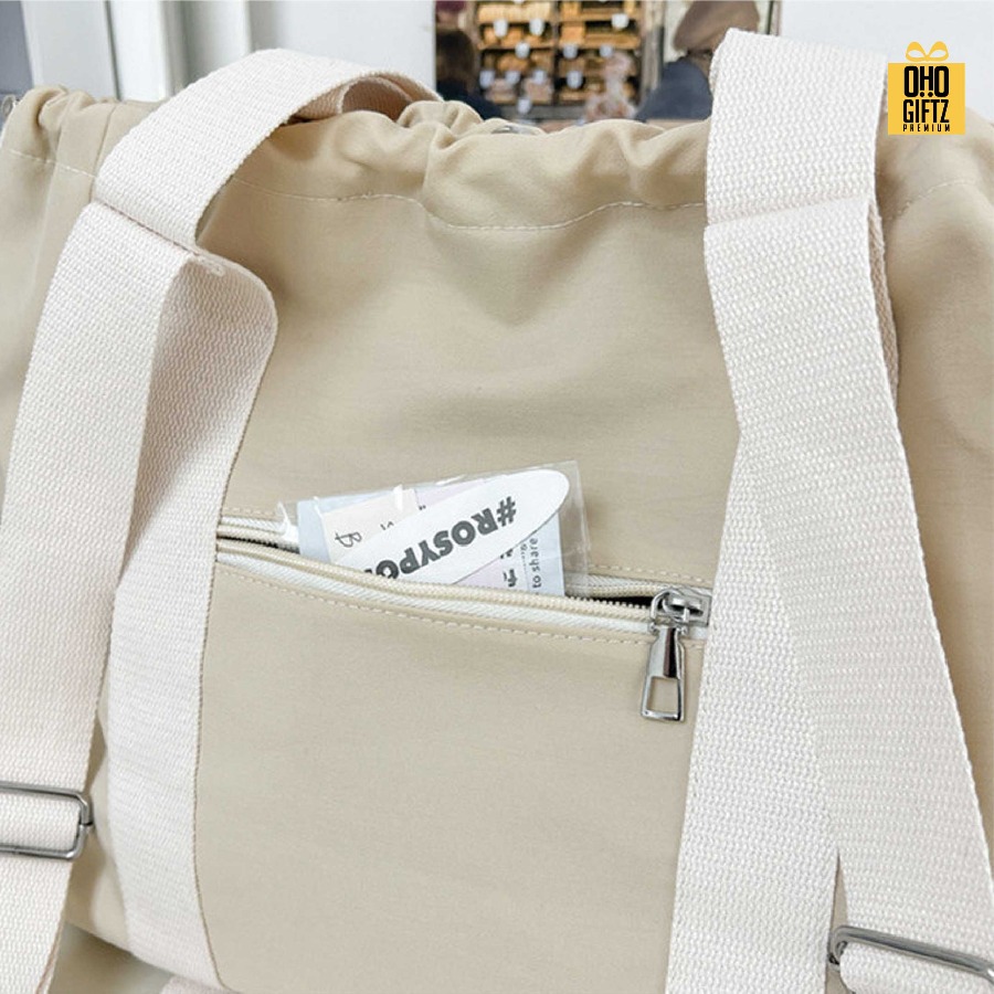 กระเป๋าเป้สะพายหลังมีเชือกรูด ดีไซน์เก๋ไก๋ จุของได้เยอะ ปากกระเป๋ากว้าง สามารถบรรจุสิ่งของได้เยอะ ผลิตจากวัสดุคุณภาพดี น้ำหนักเบา สะดวกต่อการใช้งาน