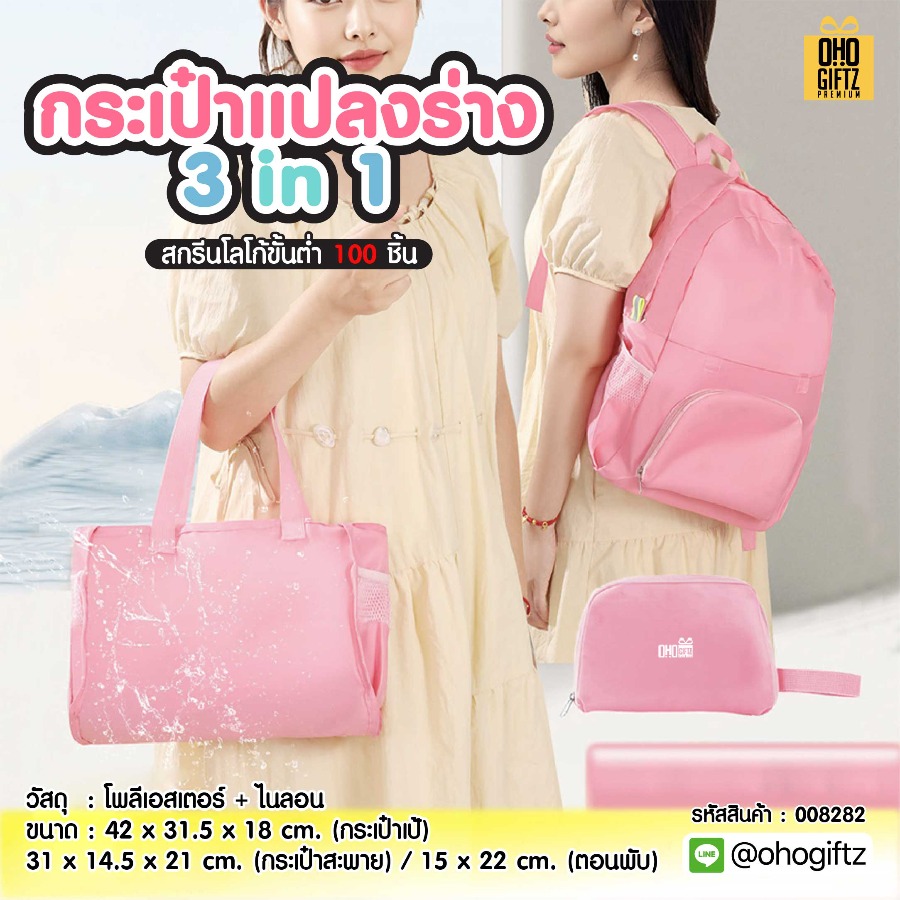 กระเป๋าแปลงร่าง 3in1 สกรีนโลโก้ ทำเป็นของพรีเมี่ยมได้