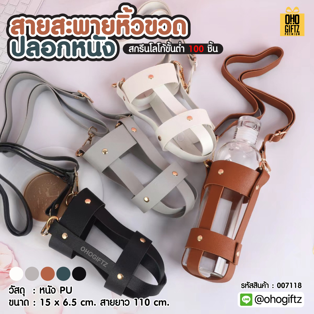 สายสะพายหิ้วขวดปลอกหนัง สกรีนโลโก้ ทำเป็นของพรีเมี่ยม ของชำร่วย ของที่ระลึก