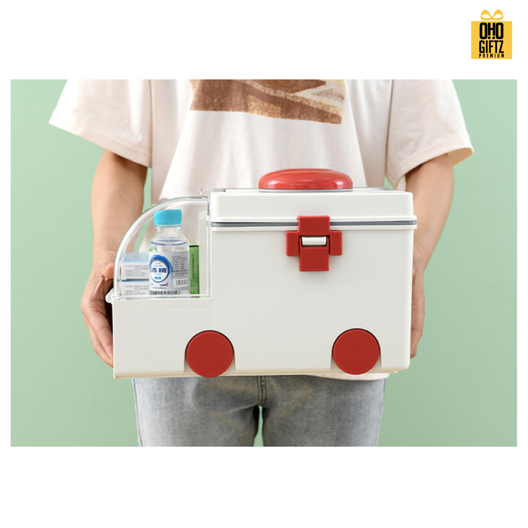 กล่องยาทรงรถพยาบาล ดีไซน์เก๋ไก๋ เหมาะสำหรับใส่ยาสามัญ ประจำบ้าน หรือ อุปกรณ์อื่นๆได้ตามต้องการ ช่วยจัดระเบียบสิ่งของไม่ให้กระจัดกระจายเป็นที่เป็นทาง น้ำหนักเบา