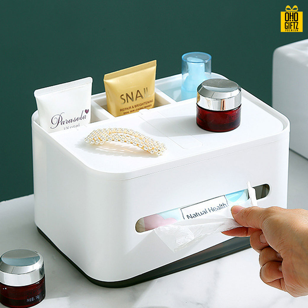 กล่องใส่ทิชชู่อเนกประสงค์ ช่วยเก็บทิชชู่ เเละ ป้องกันฝุ่นหรือสิ่งสกปรกได้ ด้านบนสามารถเก็บสิ่งของชิ้นเล็กๆได้ตามต้องการเเละยังสามารถตั้งโทรศัพท์มือถือได้