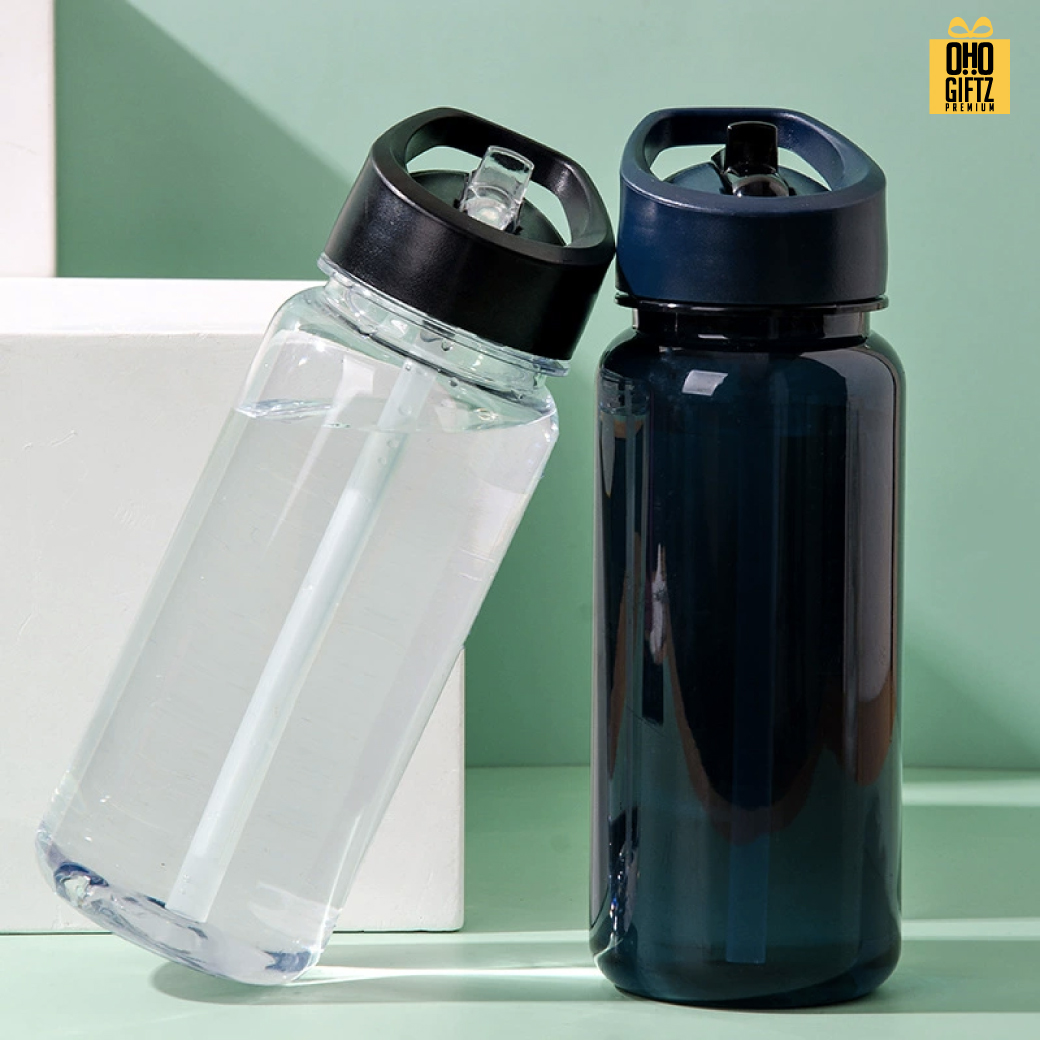 ขวดน้ำพลาสติกพร้อมหลอด สกรีนโลโก้ ทำเป็นสินค้าพรีเมี่ยม (ขั้นต่ำ 100 ชิ้น)