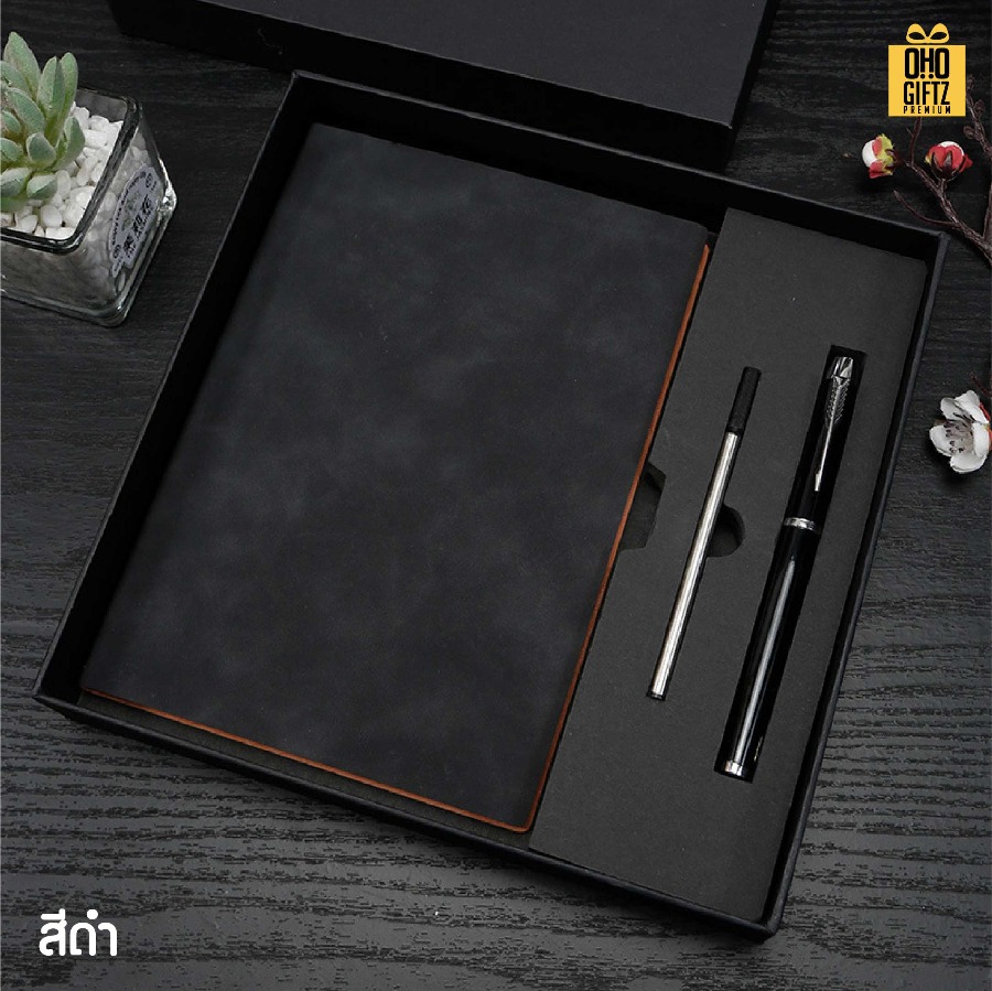 ชุดกล่องของขวัญสมุดโน๊ตและปากกา ดีไซน์เรียบหรู ในเซ็ตประกอบไปด้วยปากกาลูกลื่น สมุดโน๊ต เหมาะสำหรับมอบให้เป็นของขวัญ ของที่ระลึก หรือของพรีเมี่ยมได้ทุกเทศกาล