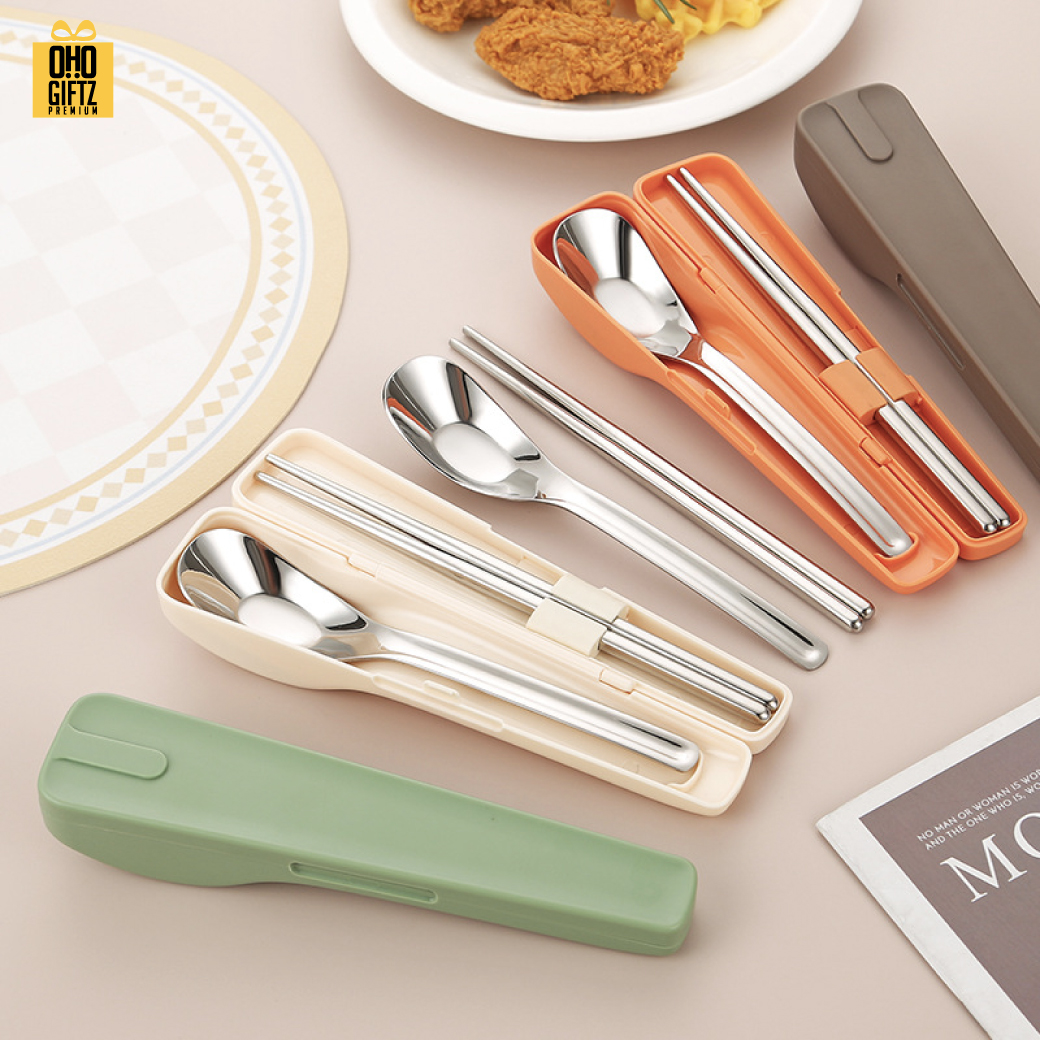 ชุดกล่องใส่ช้อนตะเกียบสไตล์ญี่ปุ่น ดีไซน์มินิมอล ช่วยกันฝุ่นและสิ่งสกปรก ผลิตจากสแตนเลส 304 วัสดุคุณภาพดี น้ำหนักเบา พกพาสะดวก