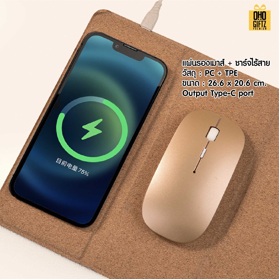 - แผ่นรองเมาส์+ชาร์จไร้สาย 26.6x20.6 cm.