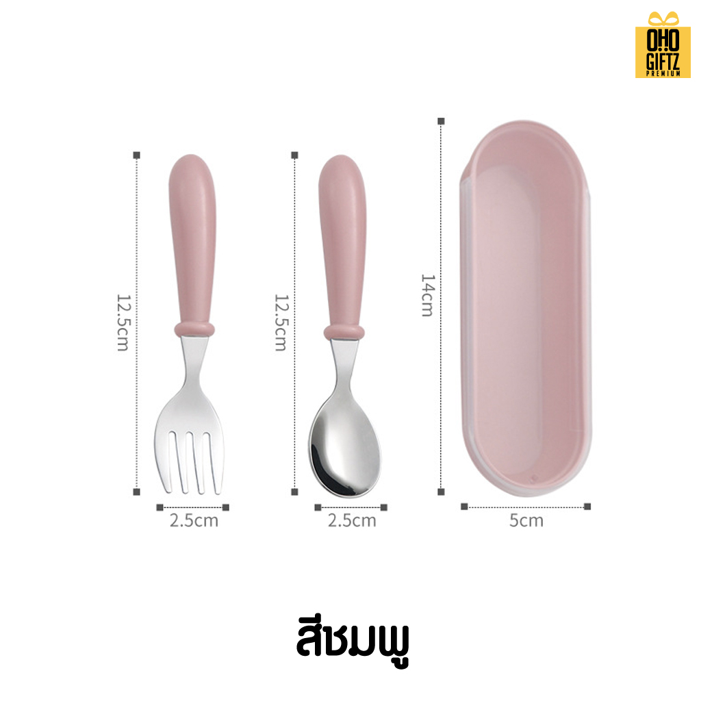 ชุดช้อนอาหารเด็ก สกรีนชื่อ สกรีนโลโก้ ทำเป็นของพรีเมี่ยมได้ (ขั้นต่ำ 100 ชิ้น)