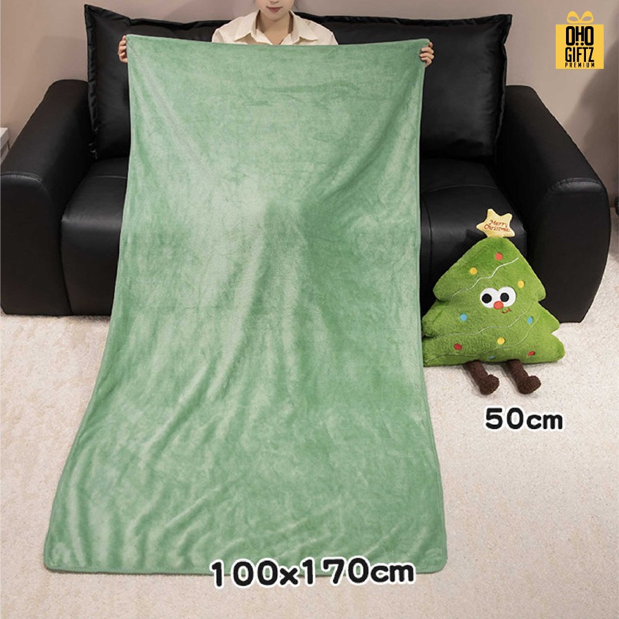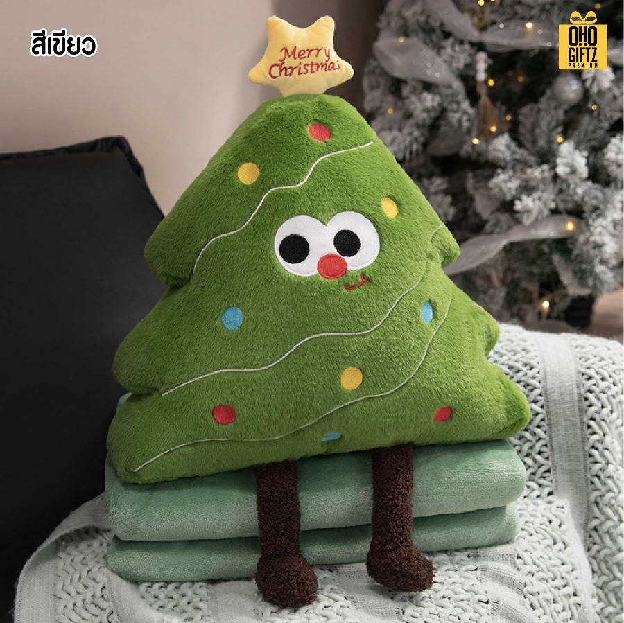 ตุ๊กตาหมอนผ้าห่มต้นคริสต์มาส สกรีนโลโก้ ทำเป็นของพรีเมี่ยม (ขั้นต่ำ 100 ชิ้น)