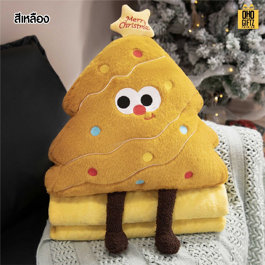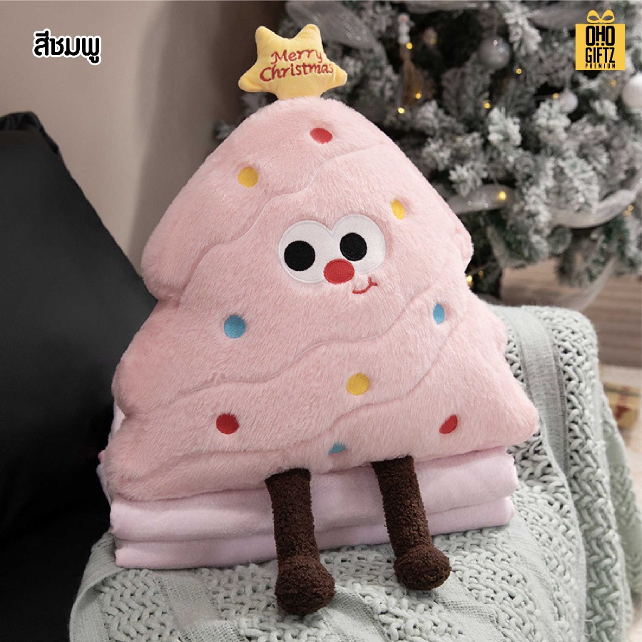 ตุ๊กตาหมอนผ้าห่มต้นคริสต์มาส สกรีนโลโก้ ติดลาเบล ทำเป็นของพรีเมี่ยมได้