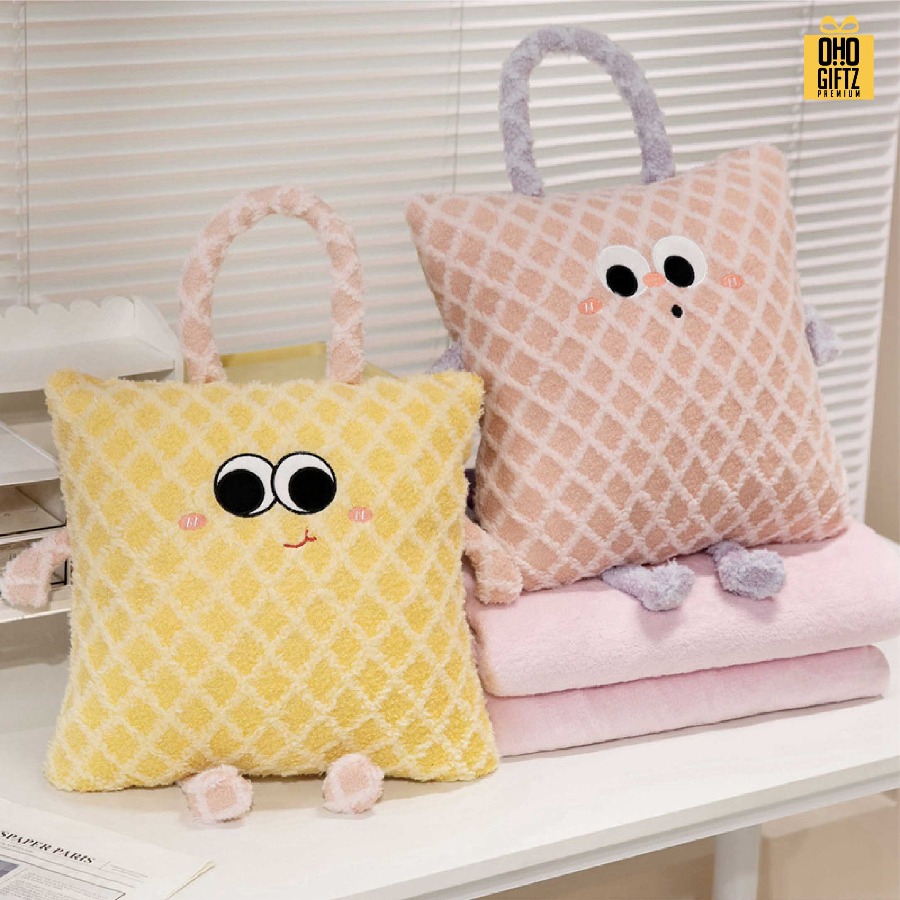 ตุ๊กตาหมอนผ้าห่มพร้อมหูหิ้ว รูปทรงน่ารัก สามารถเป็นได้ทั้ง ตุ๊กตาหมอน เเละ ยังสามารถนำ ผ้าห่มที่ซ่อนอยู่ด้านในหมอน ออกมาใช้งานได้อย่างสะดวก สามารถ ใช้สำหรับเวลาท่องเที่ยวยามที่ต้องเดินทางนานๆ ใช้ในโอกาศอื่นๆ ได้ตามต้องการ