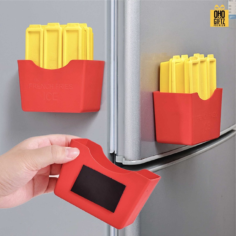 ถาดทำน้ำแข็งพลาสติกทรงเฟรนช์ฟราย แม่เหล็กติดตู้เย็น ดีไซน์น่ารัก สามารถทำน้ำแข็งได้ง่ายๆ สีสันสดใส ผลิตจากวัสดุปลอดภัยไร้สารพิษ ล้างทำความสะอาดง่าย
