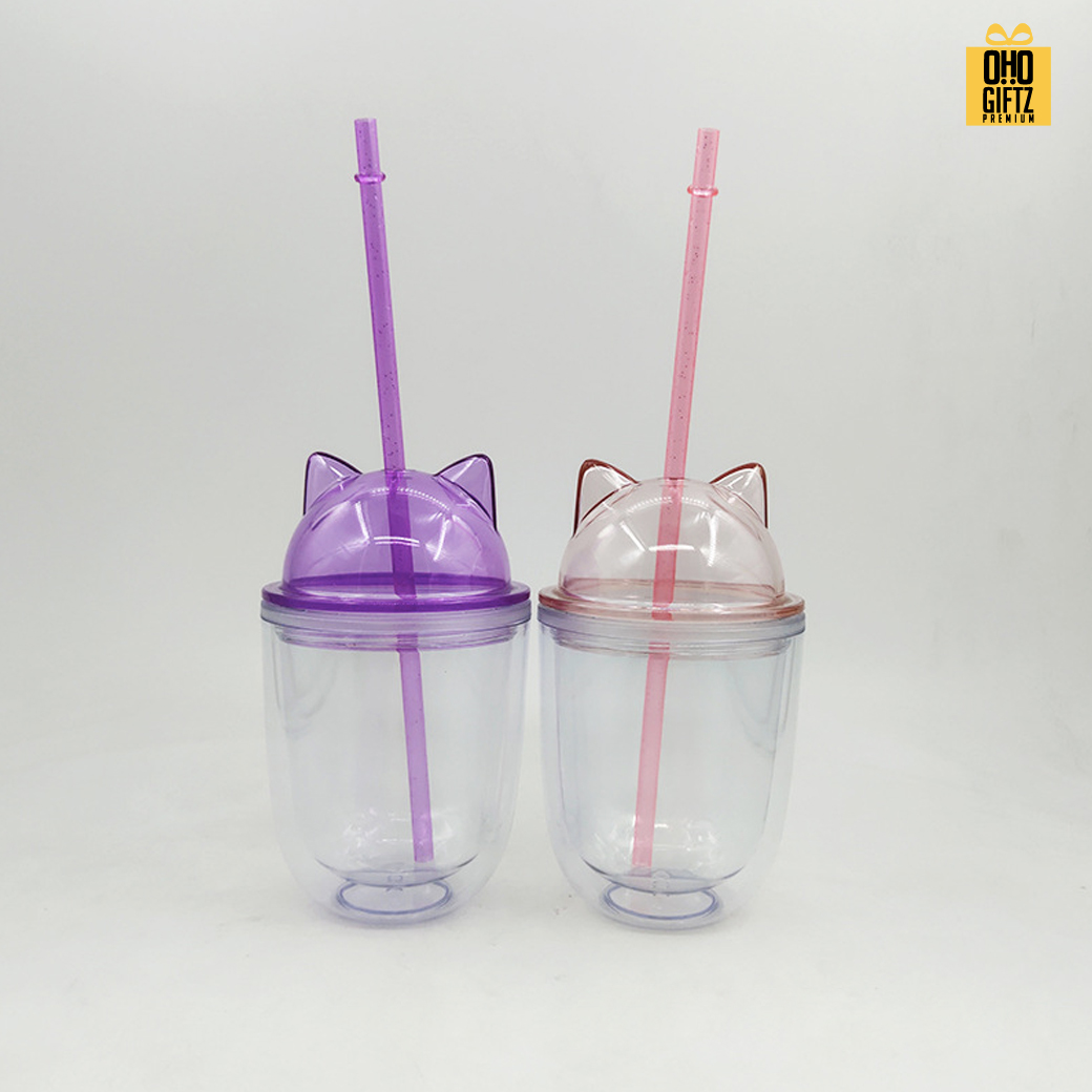 ถ้วยพลาสติก2ชั้นหูแมว ดีไซน์น่ารัก สีสันสวยงาม มาพร้อมกับแก้วพลาสติก2ชั้น มาพร้อมกับฝาและหลอดสีเข้าชุดกัน ผลิตจากวัสดุคุณภาพดี ขนาดกระทัดรัด พกพาสะดวก