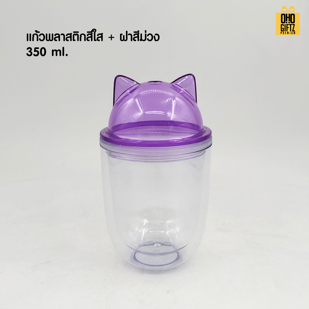 ถ้วยพลาสติก2ชั้นหูแมว สกรีนโลโก้ ทำเป็นของพรีเมี่ยมได้ (ขั้นต่ำ 100 ชิ้น)