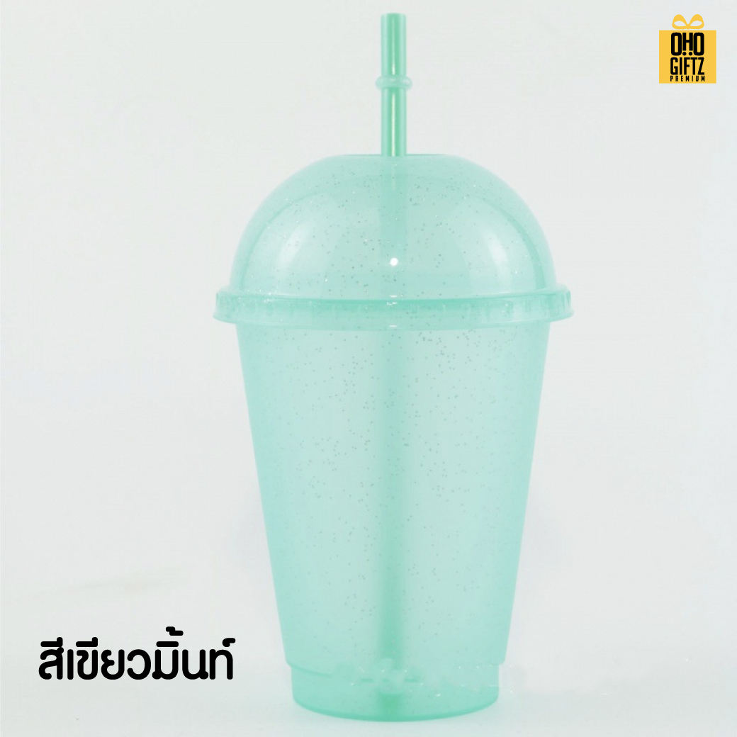 ถ้วย Glitter ฝาโดมพร้อมหลอด สกรีนโลโก้ ทำเป็นของพรีเมี่ยม (ขั้นต่ำ 100 ชิ้น)