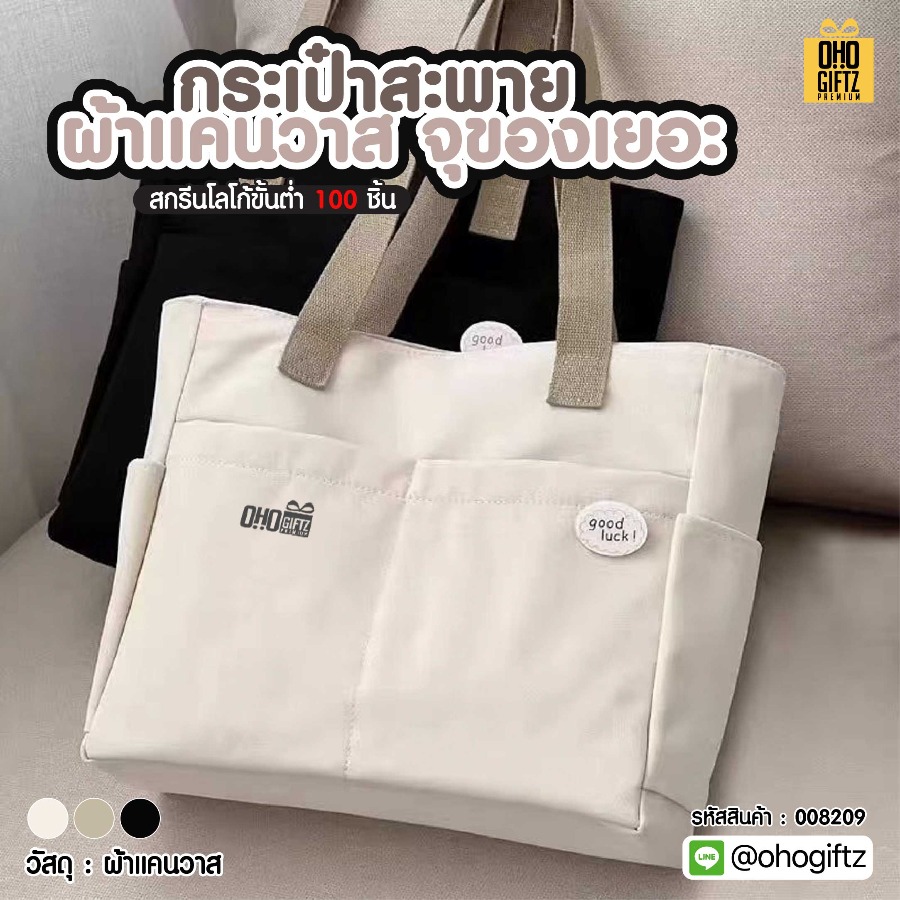 กระเป๋าสะพายผ้าแคนวาส จุของเยอะ สกรีนโลโก้ ทำเป็นของพรีเมี่ยมได้