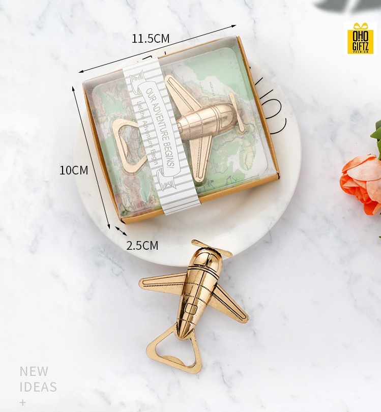 ที่เปิดขวดรูปเครื่องบิน พิมพ์สติกเกอร์ชื่อฟรี ทำเป็นของพรีเมี่ยม ของชำร่วยงานเเต่งงานได้ (ขั้นต่ำ 300 ชิ้น)