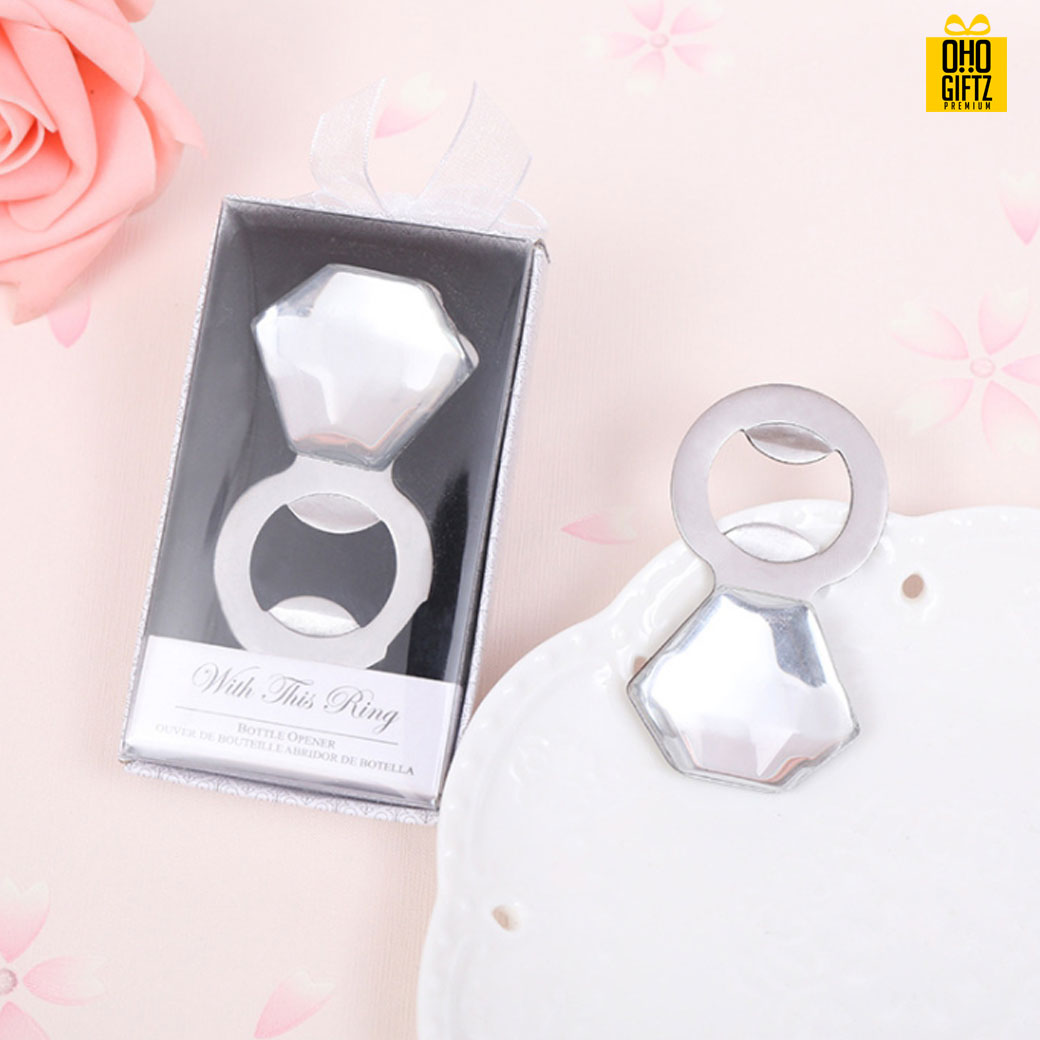 ที่เปิดขวดรูปแหวน พิมพ์สติกเกอร์ชื่อฟรี  ทำเป็นของพรีเมี่ยม ของชำร่วยงานเเต่งงานได้ (ขั้นต่ำ 300 ชิ้น)