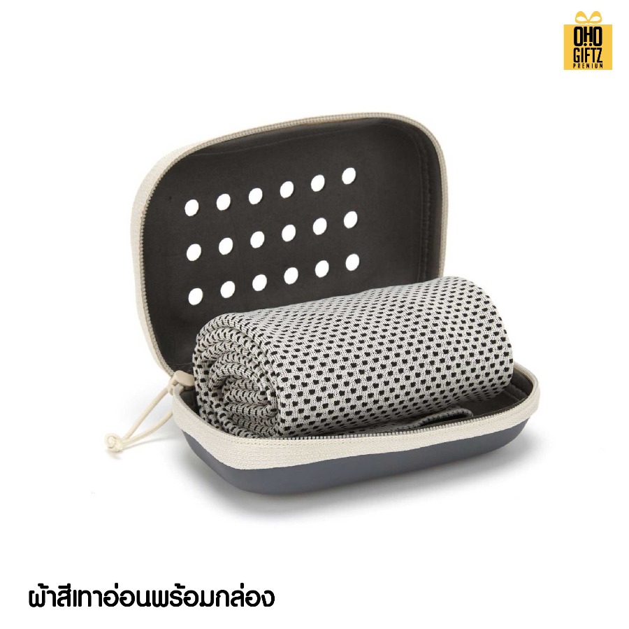 ผ้าชุบน้ำแล้วเย็นสำหรับออกกำลังกายพร้อมกล่อง สกรีนโลโก้ ทำเป็นของพรีเมี่ยมได้ (ขั้นต่ำ 100 ชิ้น)
