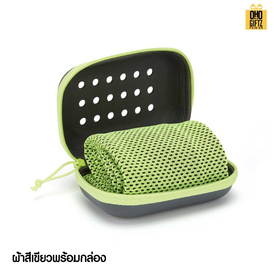 ผ้าชุบน้ำแล้วเย็นสำหรับออกกำลังกายพร้อมกล่อง ดีไซน์เก๋ไก๋ ผ้าขนนุ่ม ระบายอากาศได้เป็นอย่างดี โครงสร้างตาข่าย ระบายอากาศและแห้งไว ช่วยดูดซับเหงื่อได้รวดเร็ว ไม่มีส่วนผสมของสารเคมีทำความเย็นปลอดภัย กล่องกันกระแทกและกันน้ำได้เป็นอย่างดี พกพาได้สะดวก